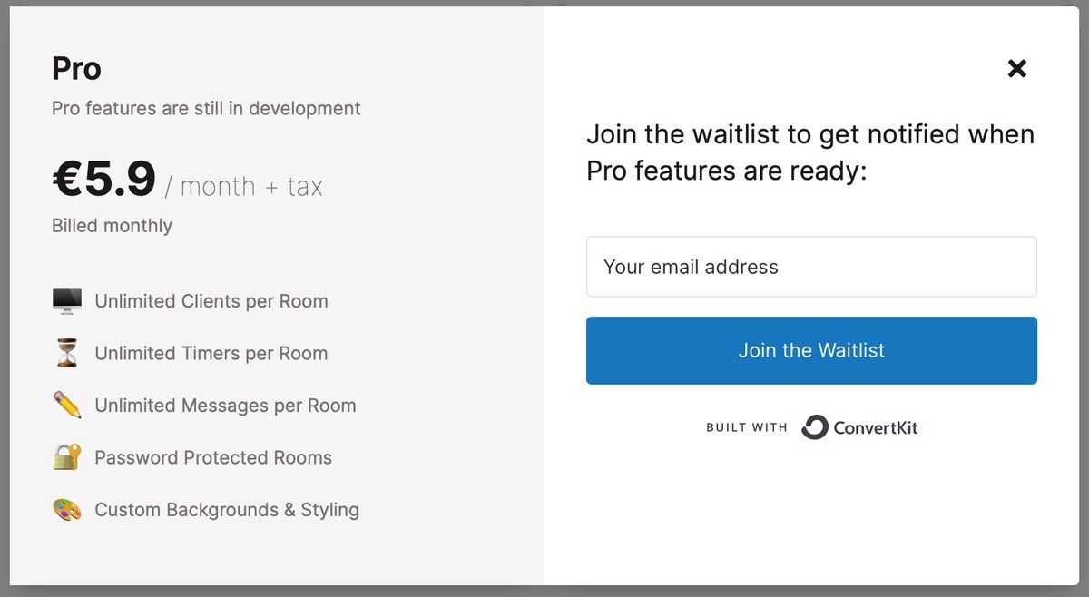 1. #buildinpublic Taking a lesson from @levelsio 🧪 Show randomized price of Pro subscription to users of stagetimer.io 📊 Evaluate what price performs best 💳 Find the right value for the service before building the checkout flow