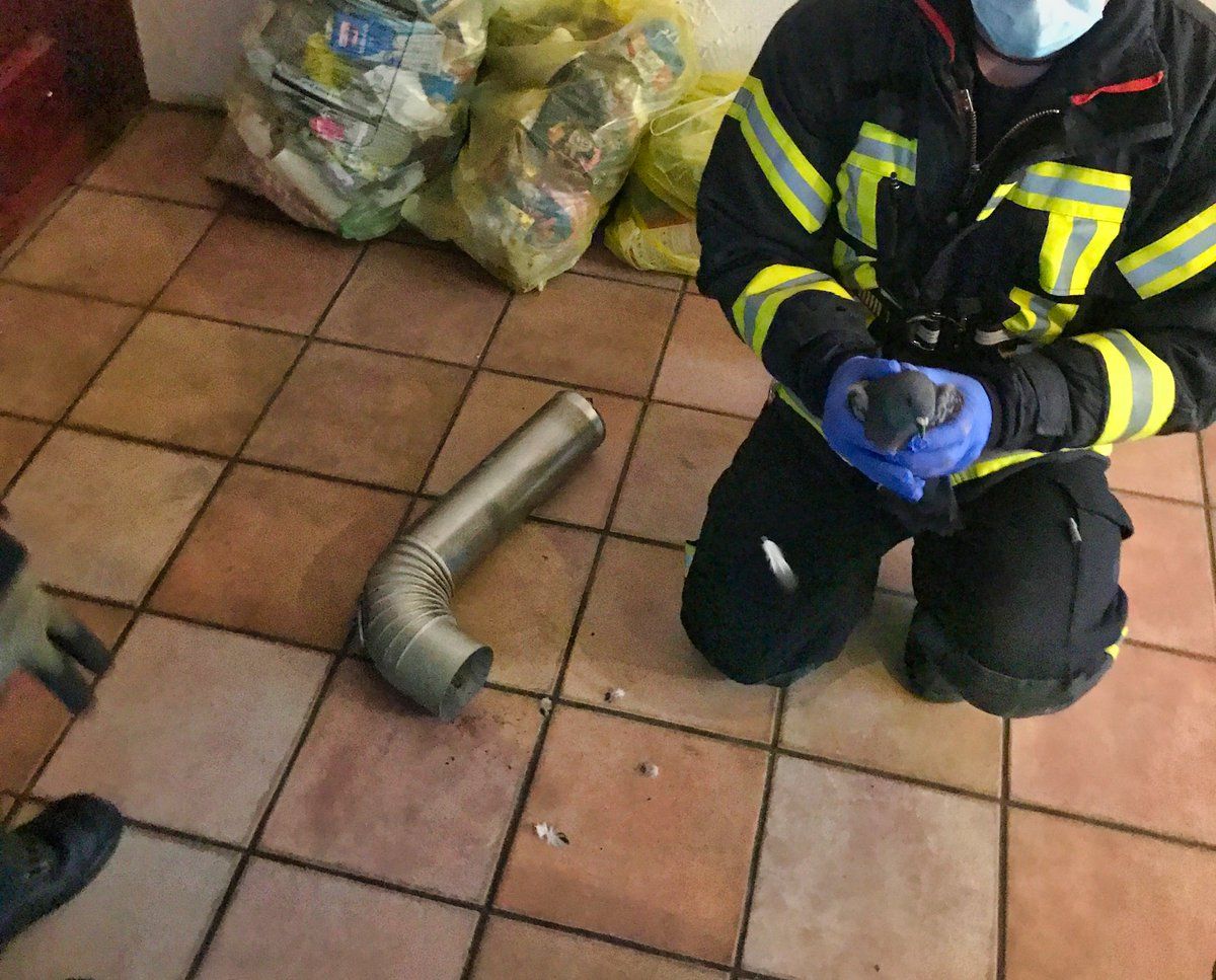 After some investigation the culprit was found: A Pigeon was stuck in the exhaust pipe!
