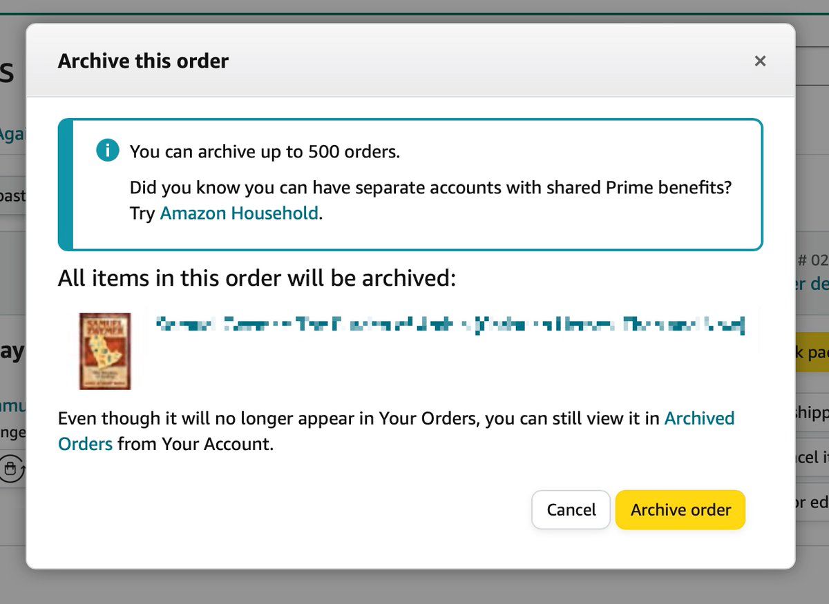 They recognize that you want to archive an order because you bought it as a gift and don't want your spouse to see it. So they use this context to upsell "Amazon Household" which solves exactly this problem.