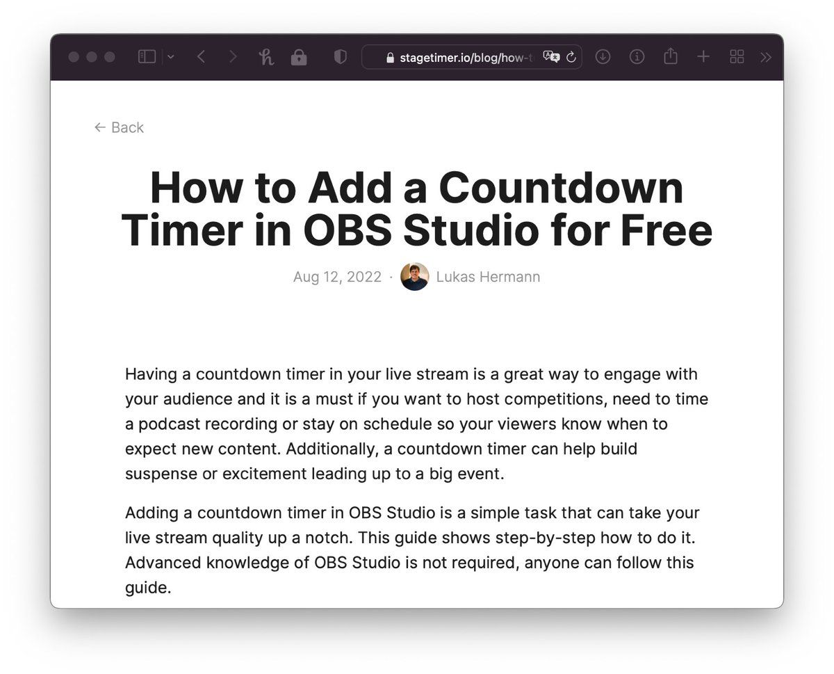 I'm trying to chase the keyword "OBS countdown timer". Let's see if it works. The GTP-3 text AI helps a lot getting these articles out. I have a list of some good prompts now that produce nice results.