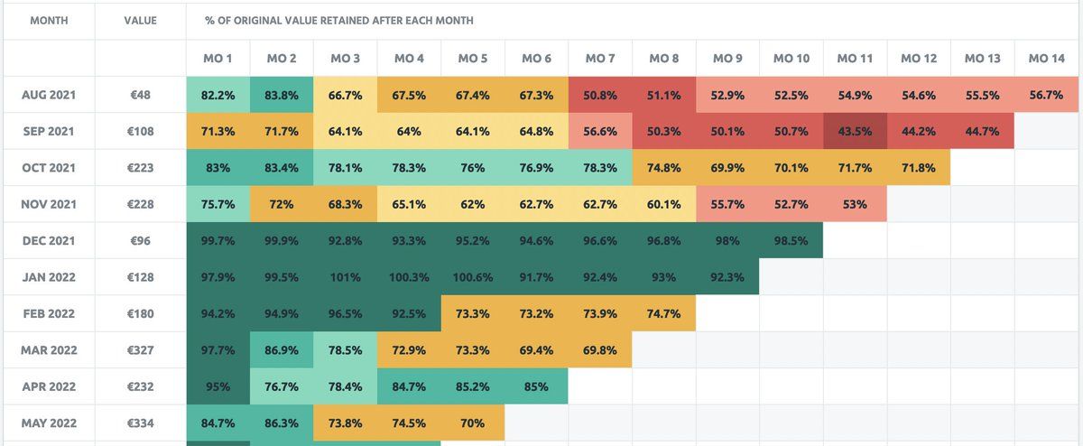 Interesting observation: The tough months are also the loyal months 😮 Though, the sample size is very small. Maybe this Dec/Jan is gonna be different.