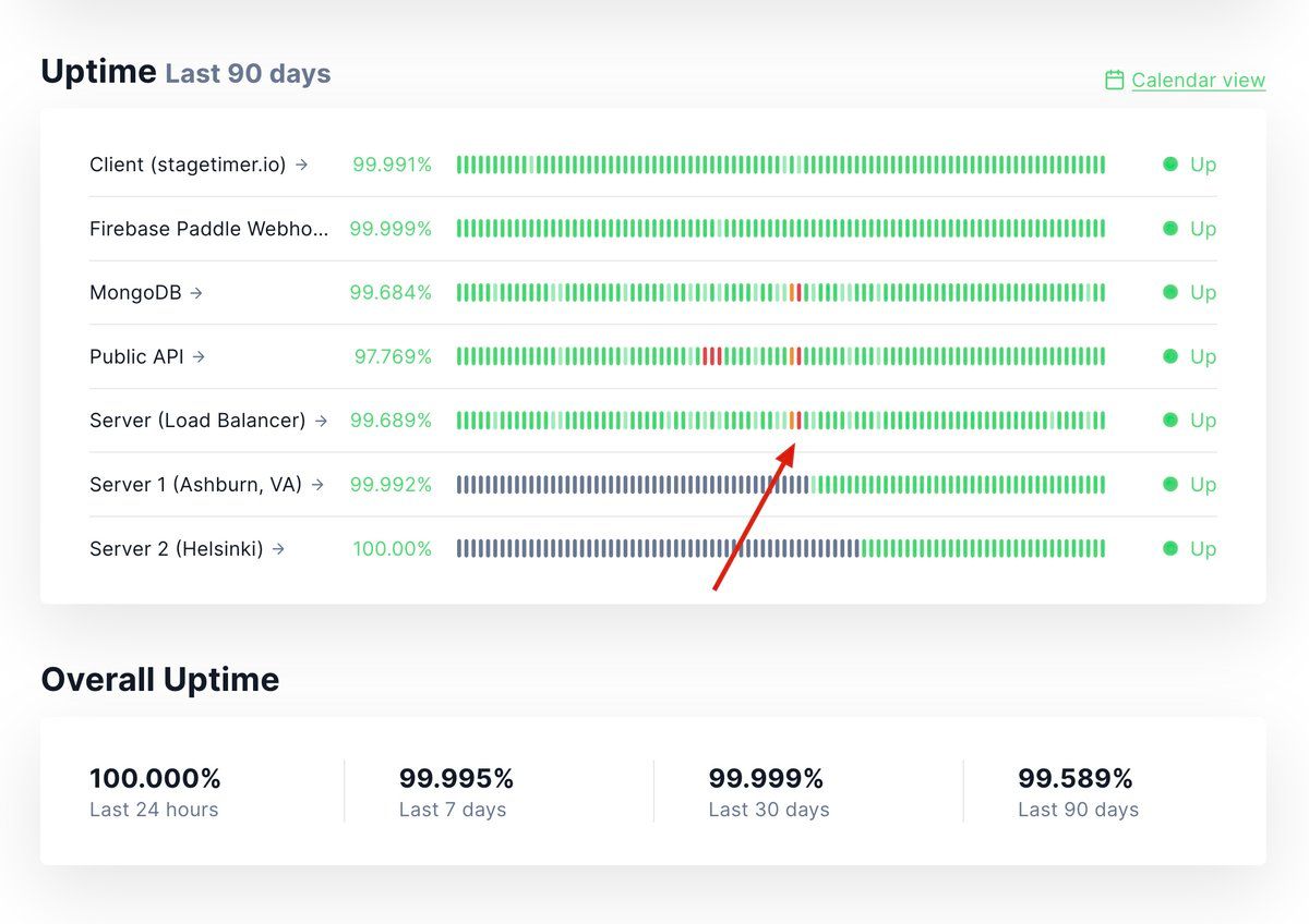Happy to report that the load balancer + redundant server are a success! We had no more server downtime since October 10. And uptime is now at least 99.99% 💪