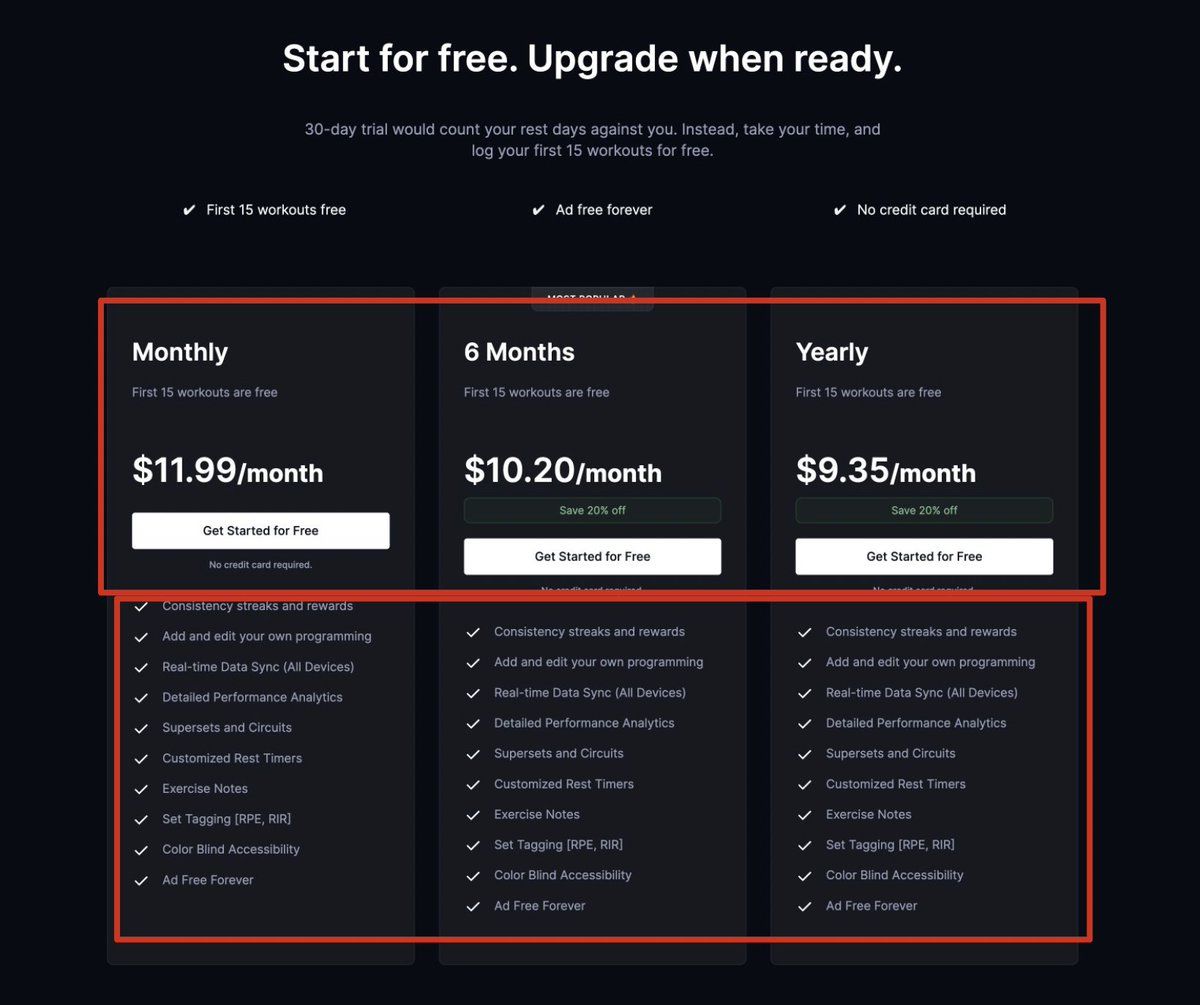 It probably makes sense to separate those blocks. The feature list is 3 times identical, the only difference is the billing period and price.
