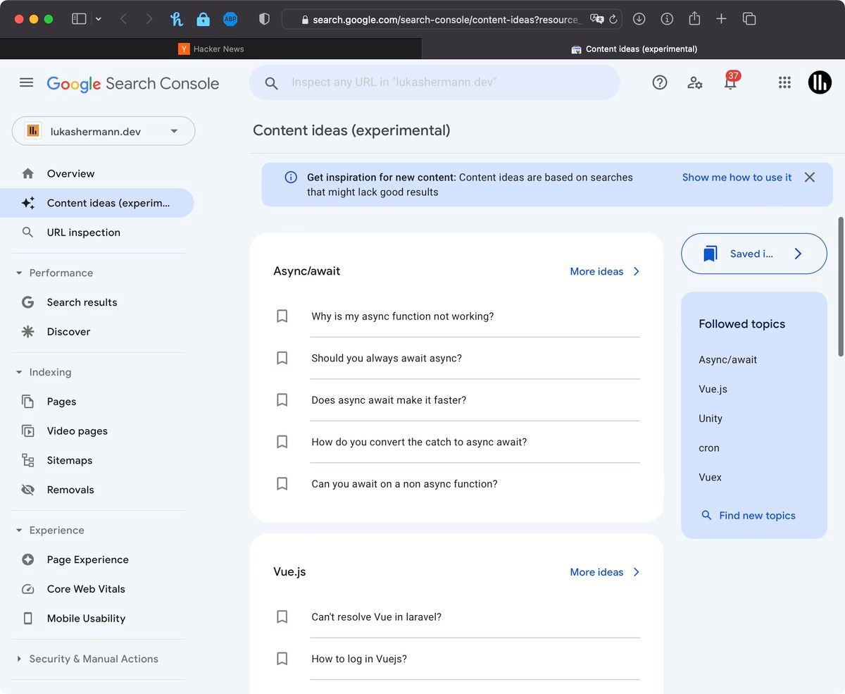 Google is test-driving a new feature for the Search Console called "Content Ideas". It makes suggestions for new keywords / article titles based on the keywords you already rank for. Combined with ChatGTP this can become a powerful SEO accelerator 📈