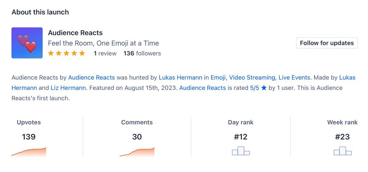 Audience Reacts serves 2 purposes: 1. As a lead magnet. A free tool leading people to Stagetimer 2. As a MVP for a new product While a launch is exciting, the real test is if we get traffic during the coming weeks and months.