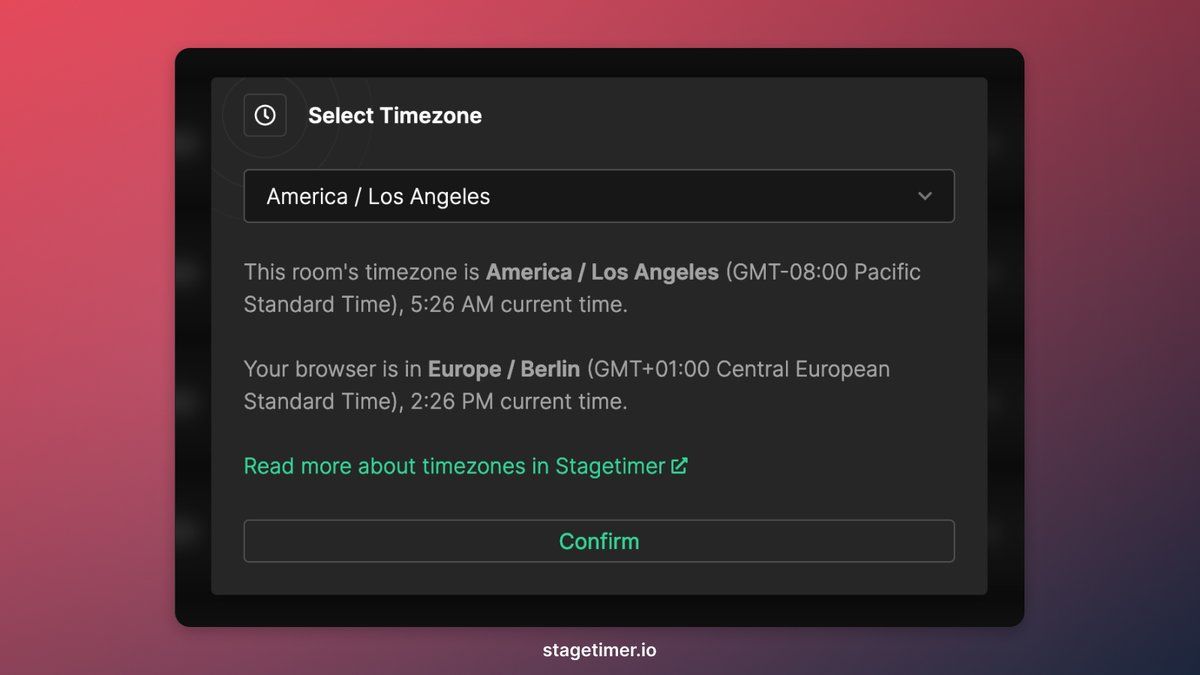Stagetimer update just dropped: Full timezone support, just in time for the March 10 DST change in the US. 😮💨
