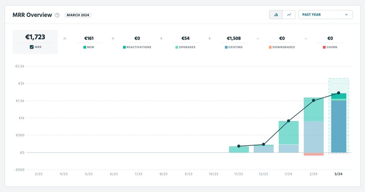 New project is off to a great start! Only 4 months and already over 1.7k MRR 📈 And we just had a customer tell us the competition asked $17,000 / year 🤯