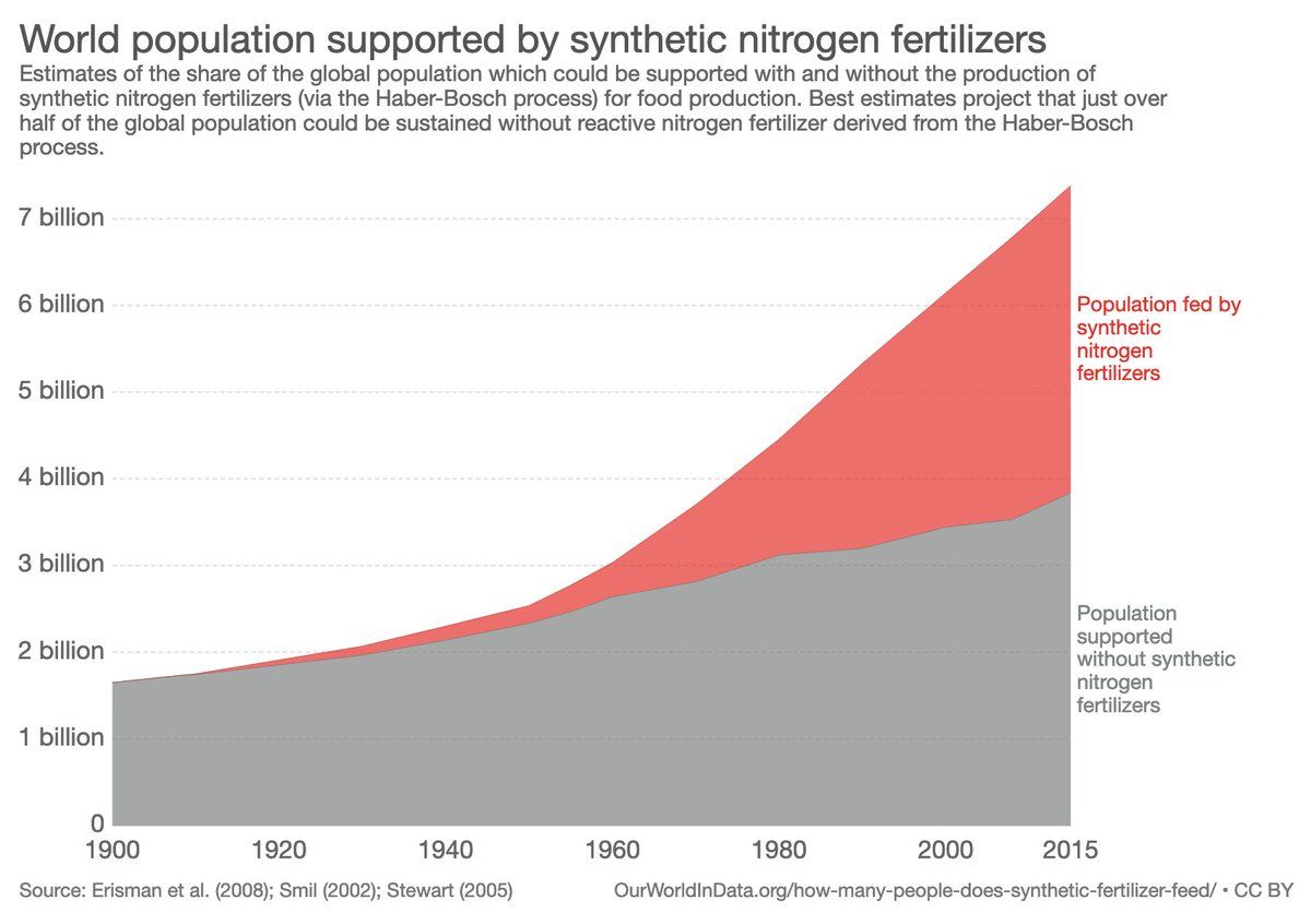 Maybe synthetic nitrogen fertilizer fits somewhere in between 😄