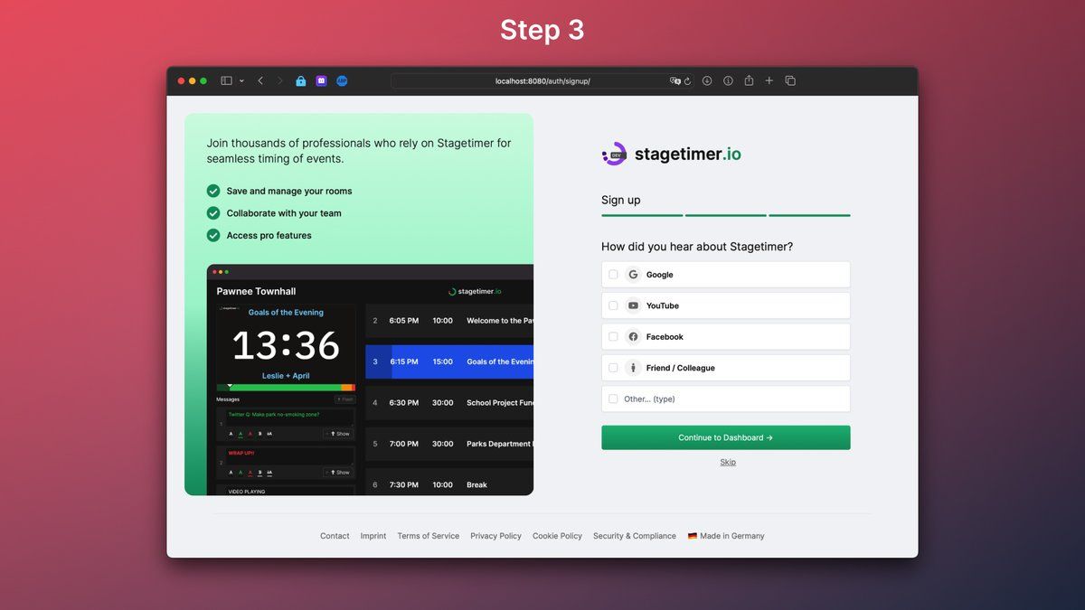 Stagetimer is 3 years old and I've always used some bad auth UI library. Finally getting around making the signup flow smooth. What could I do better?